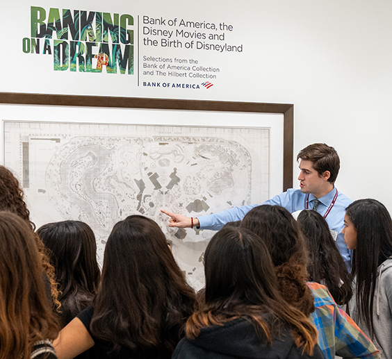 Our K–12 programs are designed for 3rd through 5th graders learning about California history, offering a unique way to see the past through the eyes of artists. In addition to school programs, we also welcome all ages for educational tours.